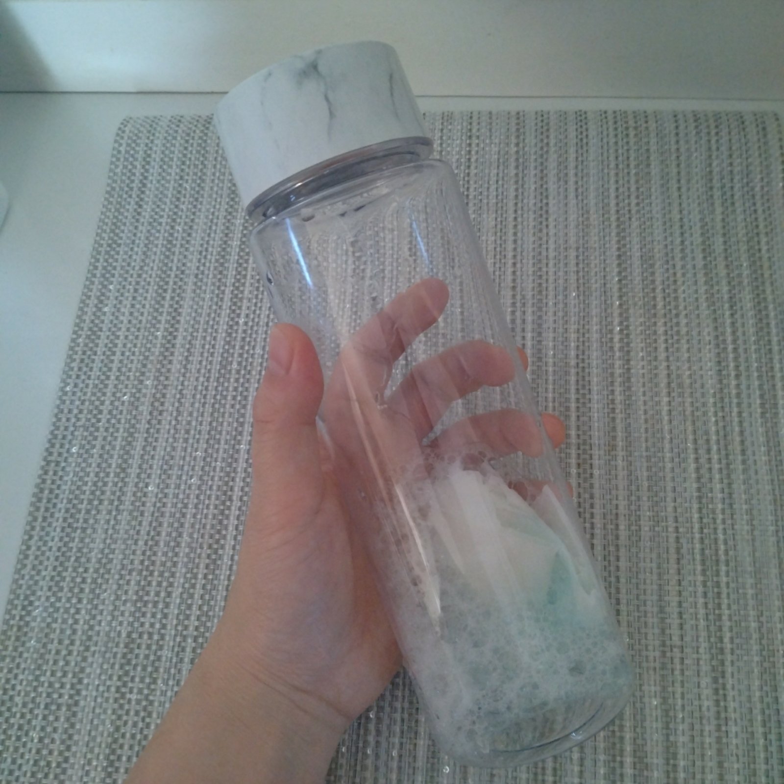 食器用洗剤をしみ込ませたキッチンペーパーと水をボトルの中に入れて、上下に振ります。洗い終わった後は、水でしっかり洗剤を流しましょう。