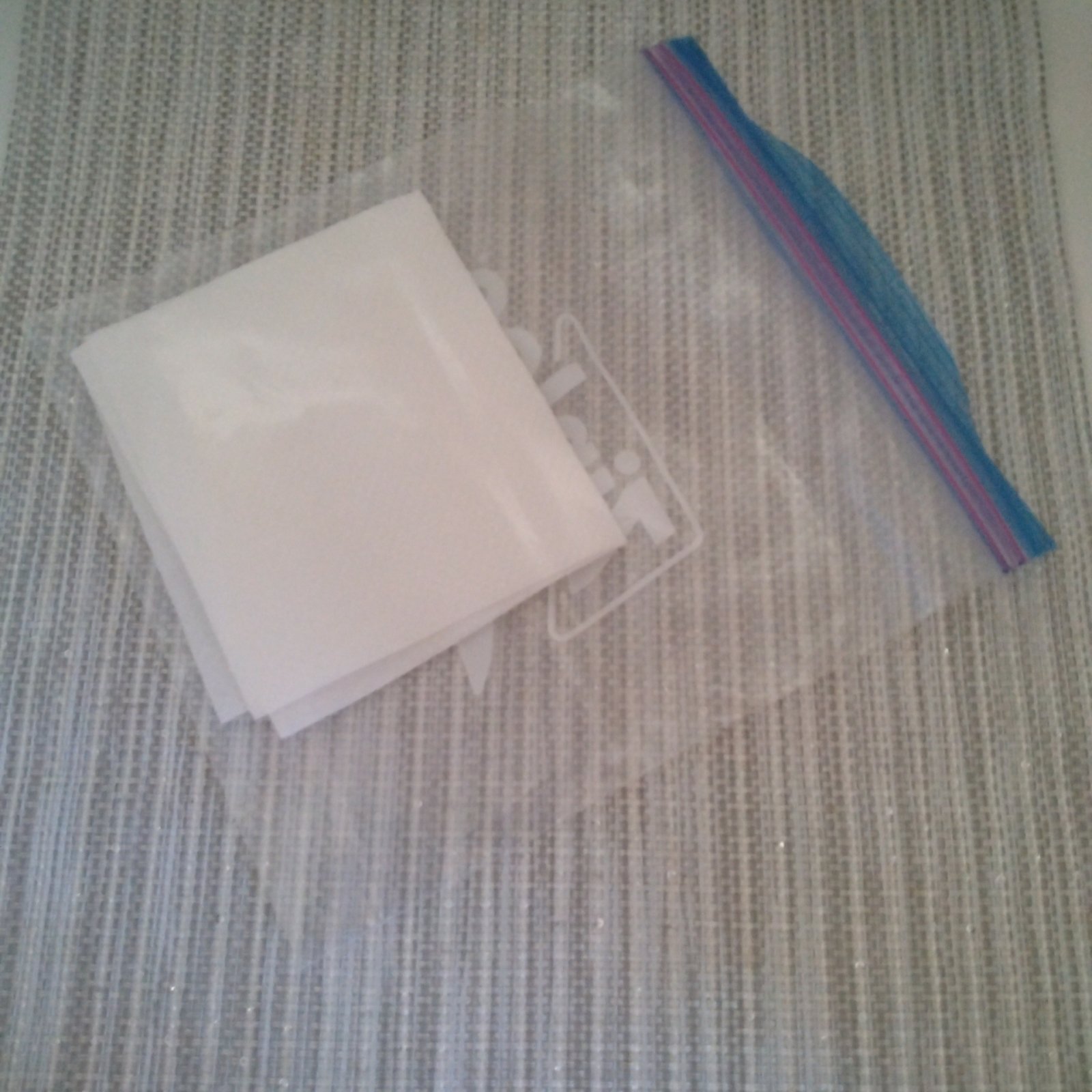 2.チャックつき袋にキッチンペーパーを入れて、食器用洗剤をしみ込ませます。チャックをしっかり閉じて、持ち運びの準備完了!