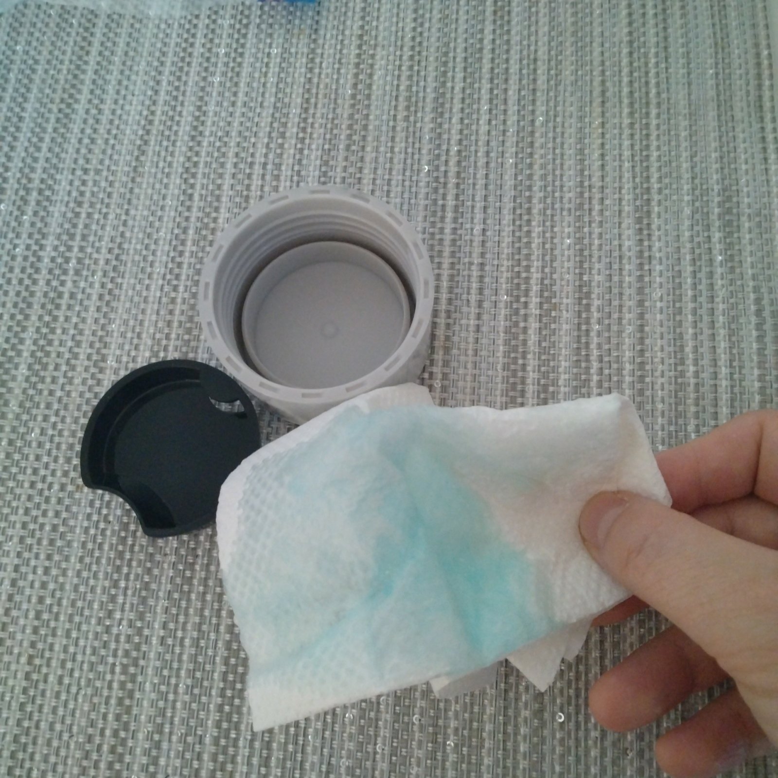 キッチンペーパーを使って、マイボトルの口元も洗います。最後にキッチンペーパーを捨てれば完了です。