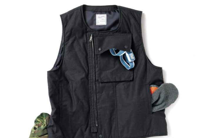 イギリス軍のボディアーマーベストから不要なディテールを削ぎ落とし、ハンドウォーマーポケットと中綿を加えて防寒性を強化。3万9600円(サウンドTEL045-225-8918)