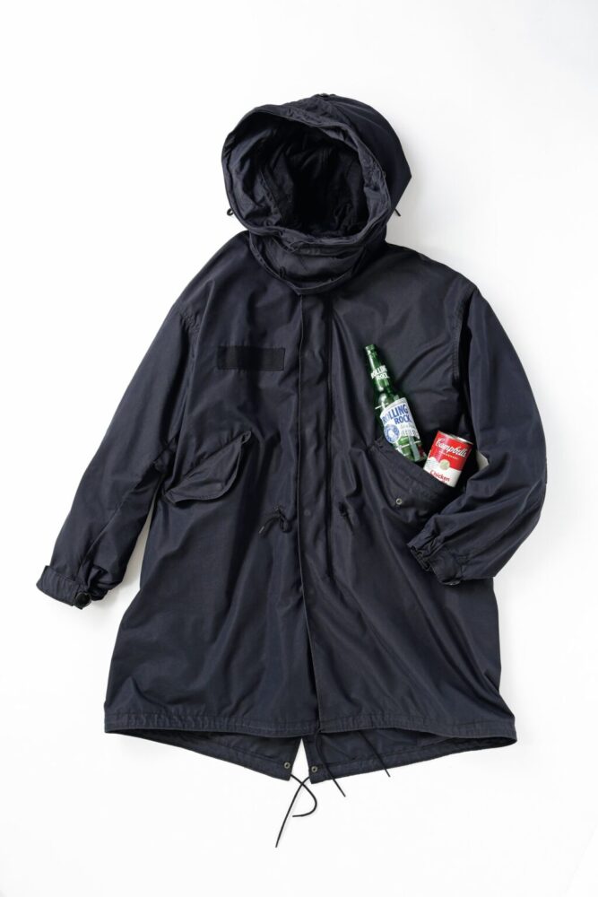 当日のM-65フィッシュテールパーカを細部まで解析し、生地から独自に製作し現代に再現。ミリタリーの本質を追求し、武骨さと洗練された都会的な雰囲気が融合した1着。11万円(アーチ東京TEL03-5825-4649)