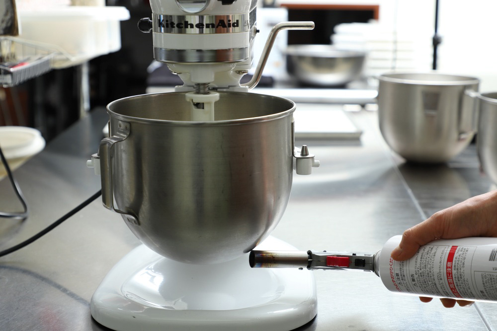 ボウルが浮くタイプのミキサーは、混ぜ始めた材料が思ったより冷たくても、後からバーナーで温められ便利。