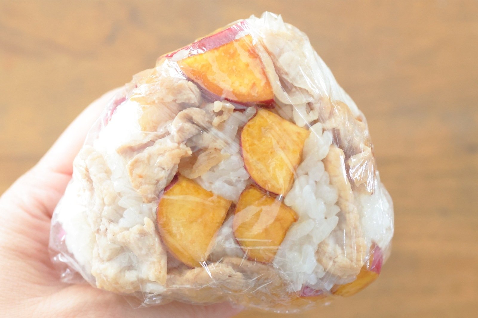 おにぎりに入れるのは、ほくほくの食感がうれしい「さつまいも」。そして、栄養豊富な「豚肉」です。2つの食材を入れることで、ボリューミーな一品に仕上げていきます。