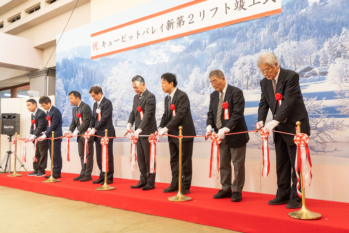 完成動画が披露されたほか、テープカットも行われた。式典終了後には今シーズンの安全祈願祭も開かれた。