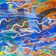 さらに「ハーバーランド駅」には、谷正輝(たに まさき)さんの作品を展示。重力をテーマに、パネルにシリカメディウムと呼ばれる独自の素材を擦り付ける方法で描かれているそう。見る方向によって輝きが変わり、違った雰囲気を楽しむことができましたよ。