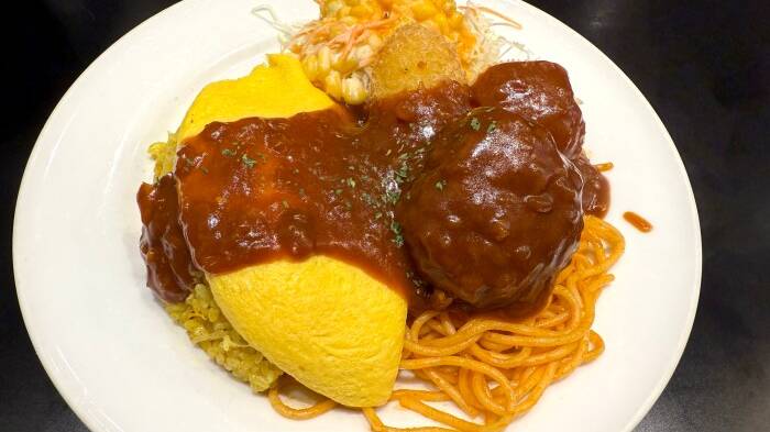 ハンバーグは注文を聞いてから手ごね整形して焼かれている様子で、そのリズミカルにパテを空気抜きする音が厨房から聞こえてました。なめらかで柔らかい歯ざわりのハンバーグにひと手間加えたあっさりめのデミグラスソース。