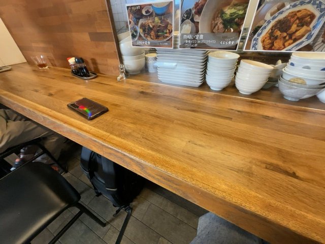 店内には厨房の女性店主1人&ホール女性1人で、この豊富なメニューを提供されてることを思うと、けっこう精力的に切り盛りされている印象。カウンター席と壁際テーブル席がある間取りで、この時は老若男女幅広い客層で満席状態。