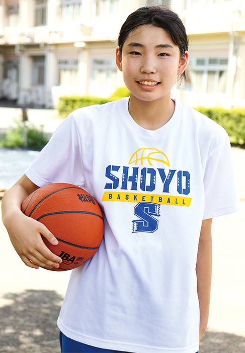 松陽高1年の長谷川さんは緑区の中山中学校出身。母の影響で小1からバスケを始め、今春入学した松陽では168cmの身長も生かし、1年生ながら早くも試合に出場している。