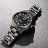 リューズにはハミルトンの頭文字であるHの刻印が入っているのもポイント。名作カーキをベースにしたデザインで、タフなステンレスケースで手巻きムーブメント。