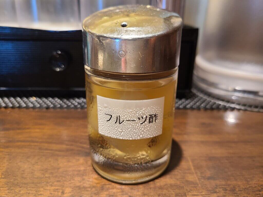 その名の通り、いくつものフルーツが入っています。フルーツ酢だけを少しレンゲに入れて飲んでみましたが、ほどよい甘さを感じるすっきりとした味わいでした。