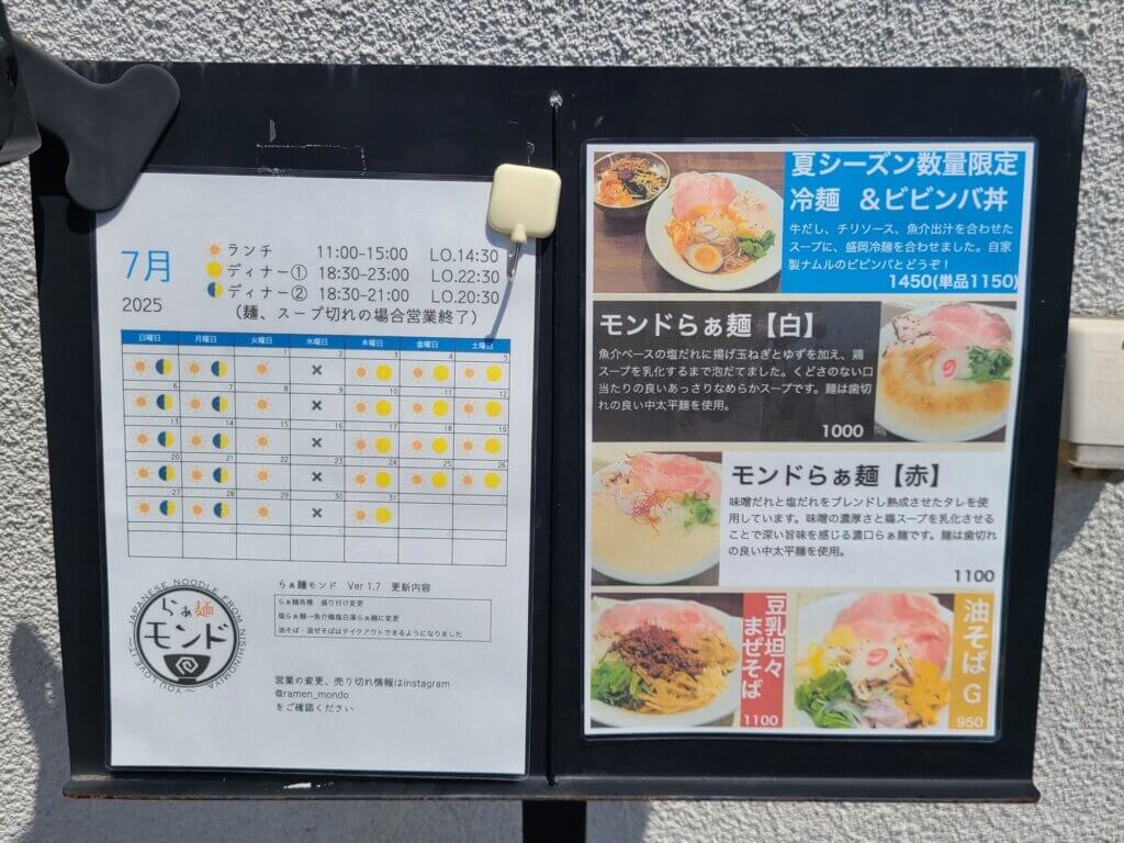 あっさりとした魚介や塩のうまみが楽しめる「モンドらぁ麺【白】」と、味噌だれをブレンドした濃厚な味わいの「モンドらぁ麺【赤】」が主力メニューのようです。