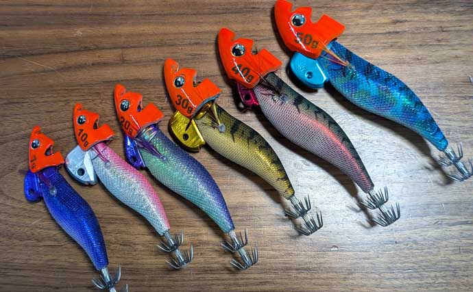 初期は2.5号、3号の出番が多いが、これからアオリイカの成長に合わせて3号、3.5号が中心になる。