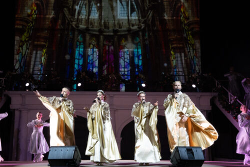 海外シンガー4人による生歌でクリスマスソングを歌唱。迫力の歌声と共にチームエキサイトによるダンスが繰り広げられ、光や映像、スモークや雪の演出も。