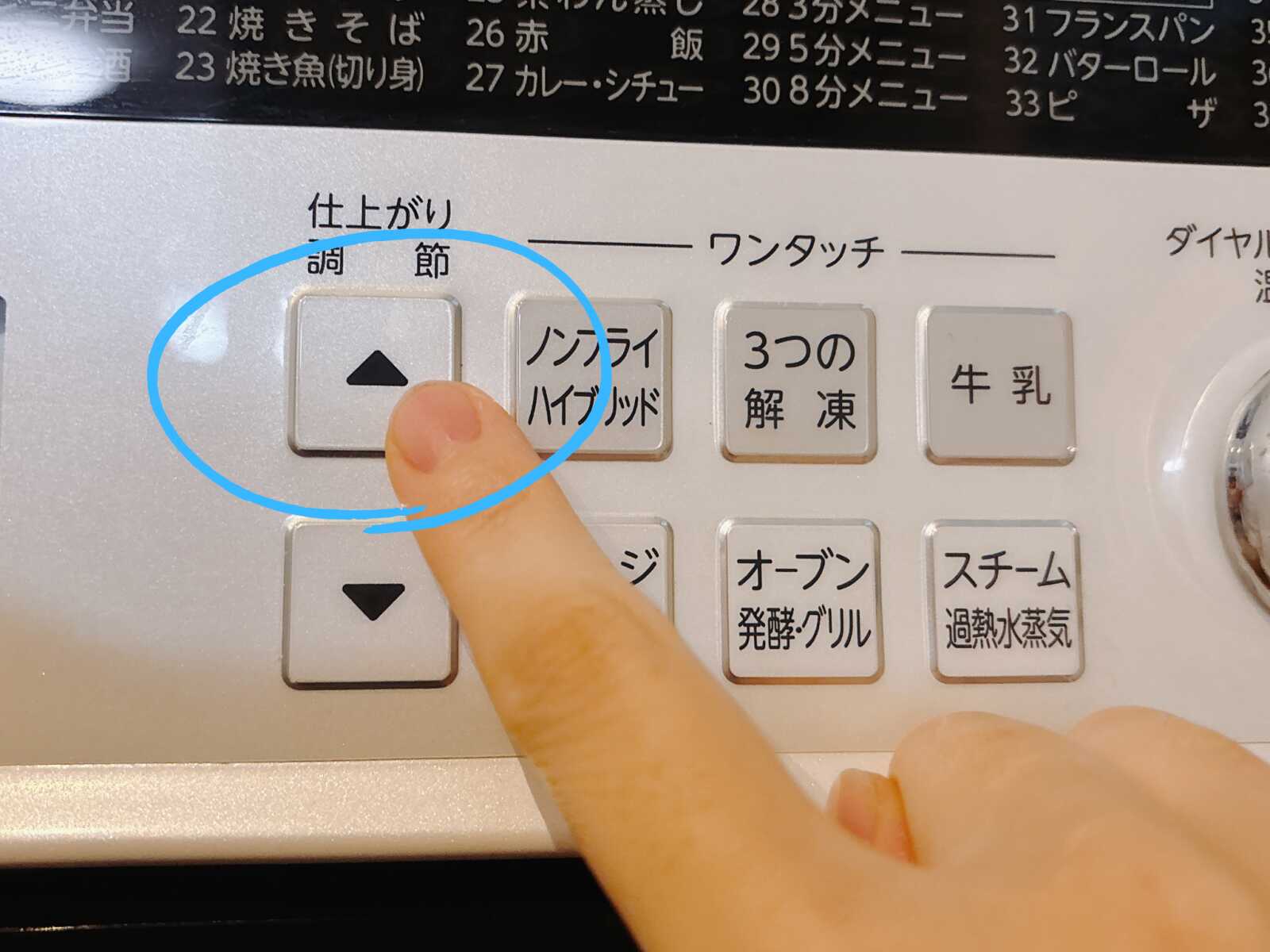 2.ピッピとブザー音が鳴ったら、仕上がり調節ボタン(▲)を押します