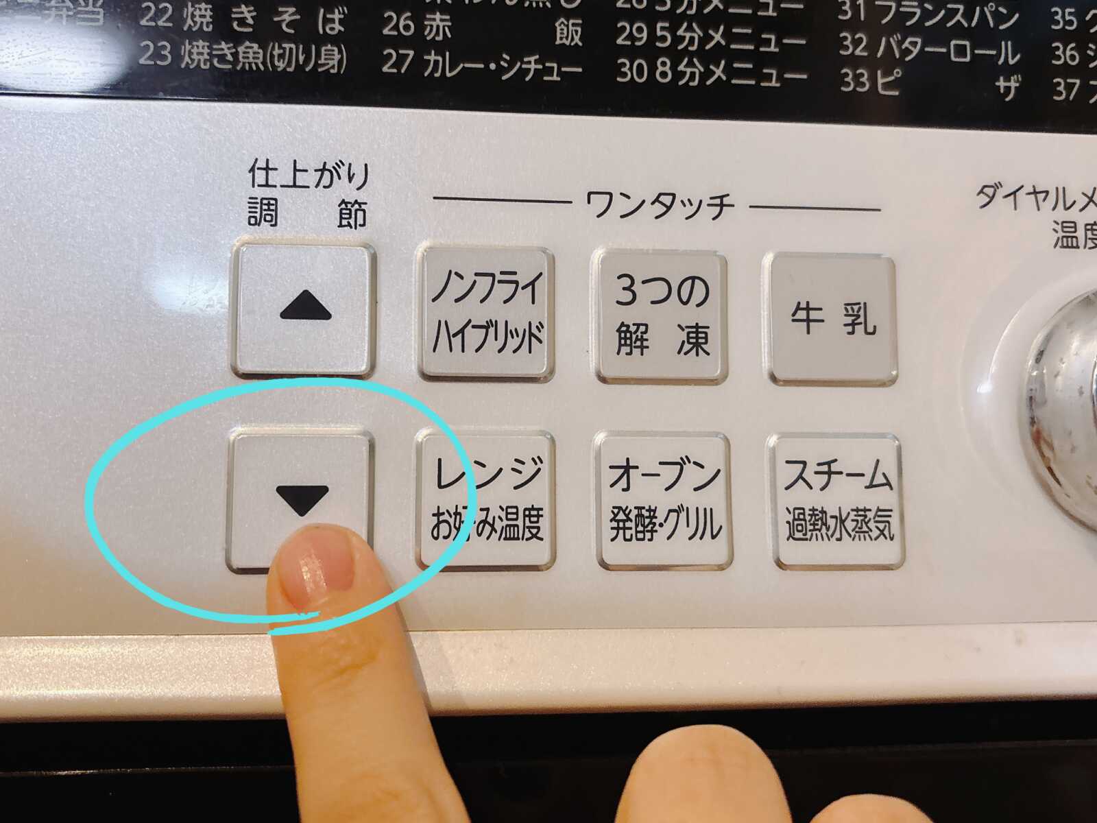 2.ピッピとブザー音が鳴ったら、仕上がり調節ボタン(▼)を押します
