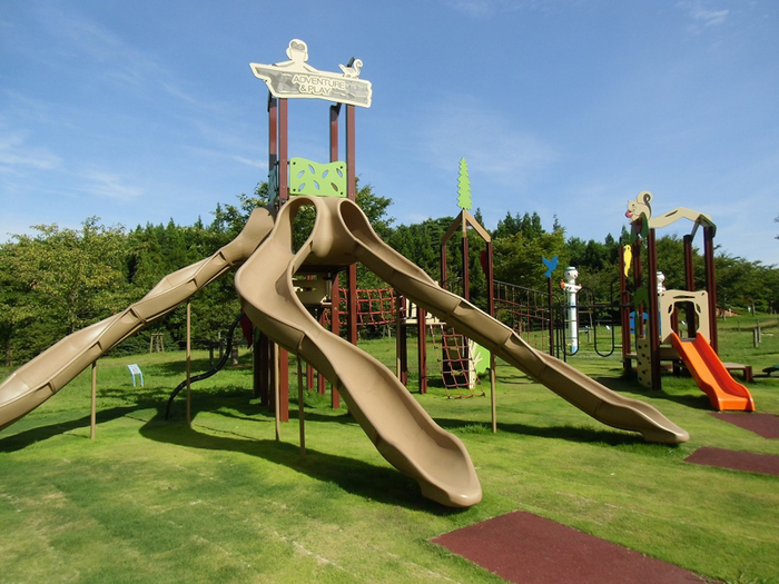 ふかふかの芝生広場に3連スライダーのすべり台とスカイロープがある大型遊具や、能登3大祭りの一つである青拍祭の「デカ山」をモデルに実物の約3分の2の大きさでつくられたデカ山展望台、バーベキュー場など遊び場がいっぱいの人気スポットです!
