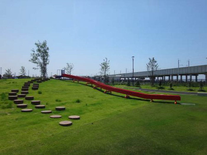県内で一番なが〜い全長83mのローラーすべり台をはじめ、七つの砦からなる「海底都市」をイメージした大型遊具など、冒険心をくすぐるユニークな遊具が充実しています。