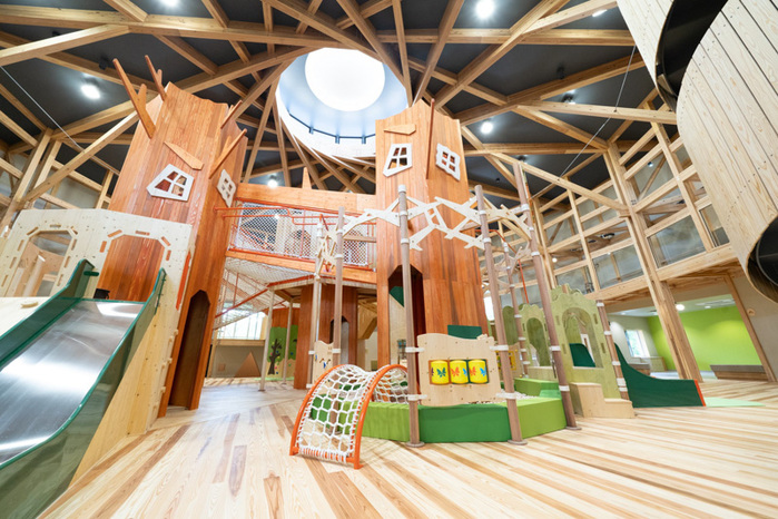 昨年、令和5年の開園50周年にあたり、アスレチック、バーベキュー場、インフォメーションセンターがリニューアルされたほか、今年7月には雨や雪の日でも利用できる全天候型遊び場である屋内木育施設「もりのひみつきち」がオープン!