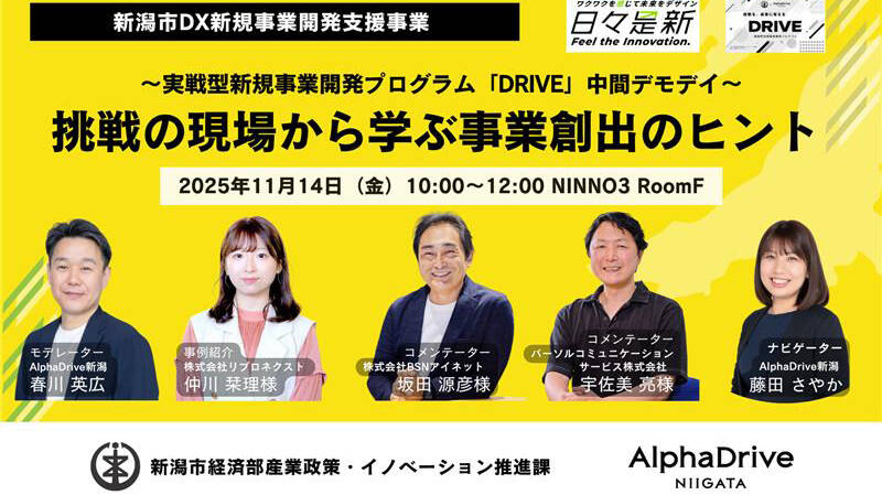 【注目イベント】『日々是新』でDX新規事業の成果を発表 新潟市主催『DRIVE中間デモデイ』11月14日開催