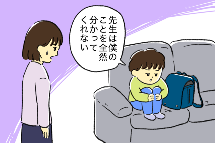 小学2年生のとき、息子は担任の先生との関係がうまくいかず、学校に行きしぶるように。1年生の頃は友だちもいて、トラブルは多かったものの「学校は好き」と言って通えていました。でも、新しい担任の先生は発達障害への理解が浅く、「厳しくしつければ治る」と考えているようでした。