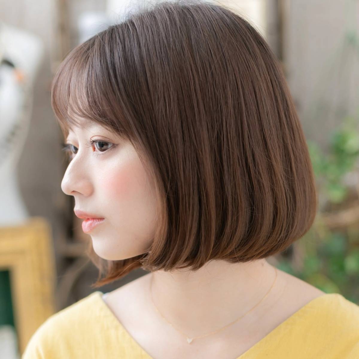 前下がりシルエットのボブヘアは、大人女子が気になるたるみなどをカバーすることができるので、オバさん感が出にくいです。