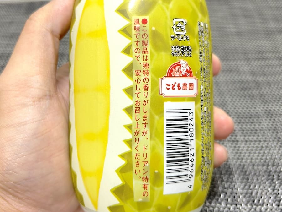 次に側面を見ていきます。すると、「この製品は独特の香りがしますが、ドリアン特有の風味ですので、安心してお召し上がりください」との注意書きが。ヒッ……でも「美味爽快」ですからきっと大丈夫。大丈夫?