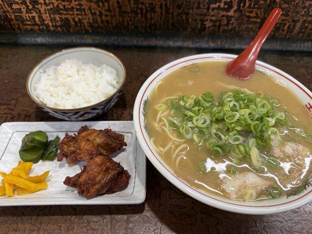 ランチタイムは「ラーメン+唐揚げ2個+ごはん+香の物」で1,000円というお得なセットが人気。