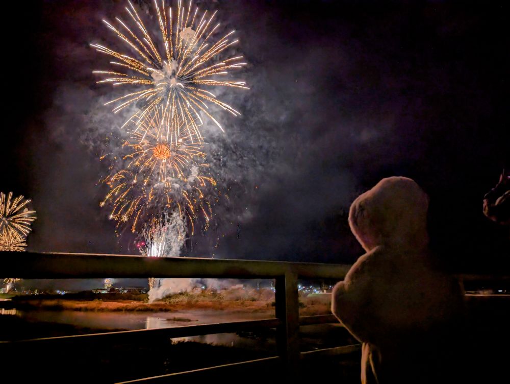 夜は「ありだがわ天空絵巻」でスケールの大きな花火に感動。