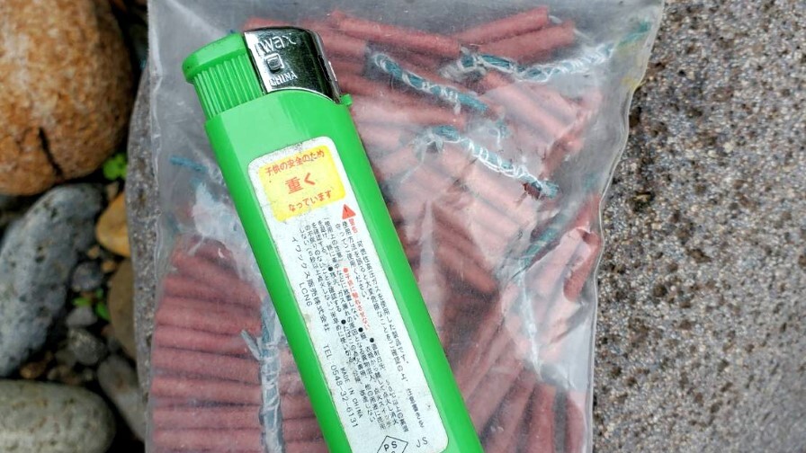 ヒグマ対策の爆竹は、ライターと一緒にチャック付き袋に収納。ベストに入れておくと立ち込んでもシケにくい