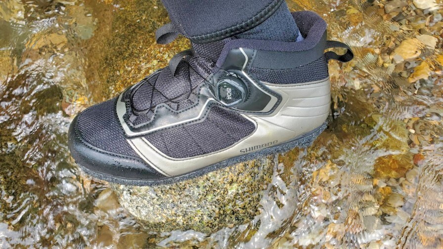 シューズ類はアユタビが一般的だが、フェルトスパイクの磯シューズも流用できる。写真はシマノ『カットラバーピンフェルトフィットシューズ』