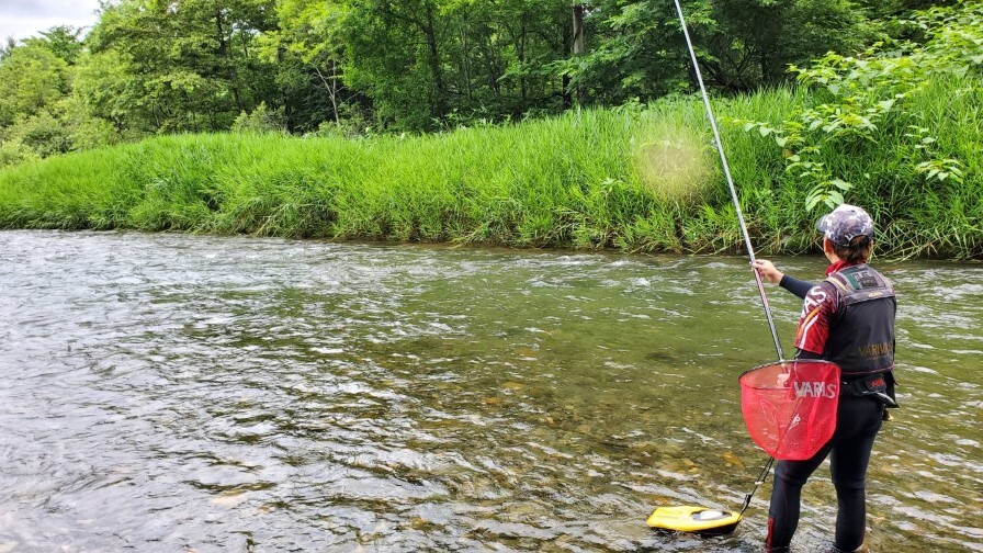 ポイントは花石、中里、住吉、稲穂、田代の中~上流部に各所ある。ただし、石のある場所とない場所がはっきりしていて、どこにでも魚がいる感じではない。また、8月以降は渇水になる年が少なくない。「利別は水が詰まると追いが渋い」と話すベテランもいて、そんな状況では少しでも水量の多い中流部に入るとよいかもしれない。