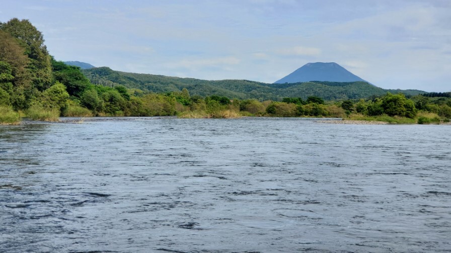 尻別川の豊国橋上流。後志エリアの象徴といえる羊蹄山をバックに、アユザオを振れるのは実に気持ちがよい