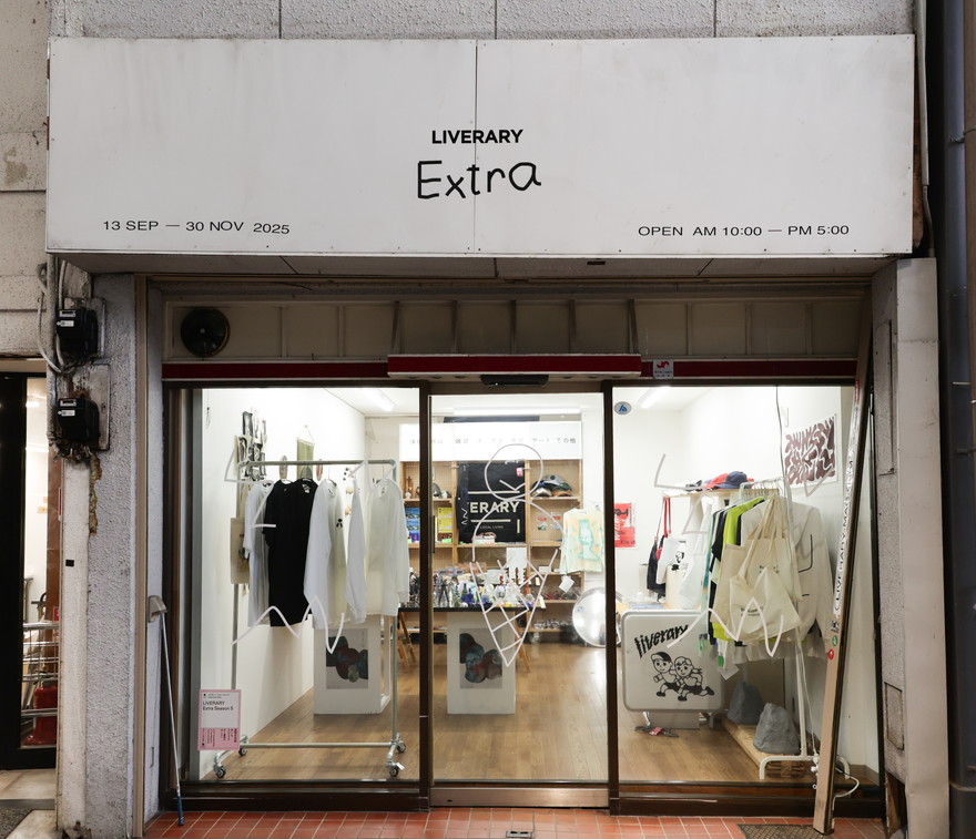 さらに、店内外を使ってポップアップや展示企画を実施。約2週間ごとにゲストアーティストやショップを“特集”するため、店内の様子もガラリと変わります。これまで地元のカルチャーを発信してきた「LIVERARY」だからこそ可能にしたアーティストも登場。“特集”の内容については、随時公式SNS(@liverary_extra)で情報を公開しているので、来場前の確認をお忘れなく。