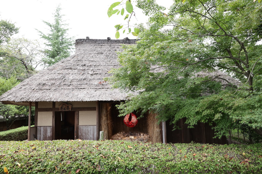 「尾張瀬戸駅」から歩いて5分ほど。坂道を登ってたどり着いたのが、茅葺き入母屋造の建物「無風庵」です。瀬戸の陶芸の確立に大きな足跡を残した近代美術工芸家・藤井達吉さんの工房だった建物を、昭和27年に現在の場所に移築。芸術祭の会期中は、沖潤子さんの作品が展示されています。