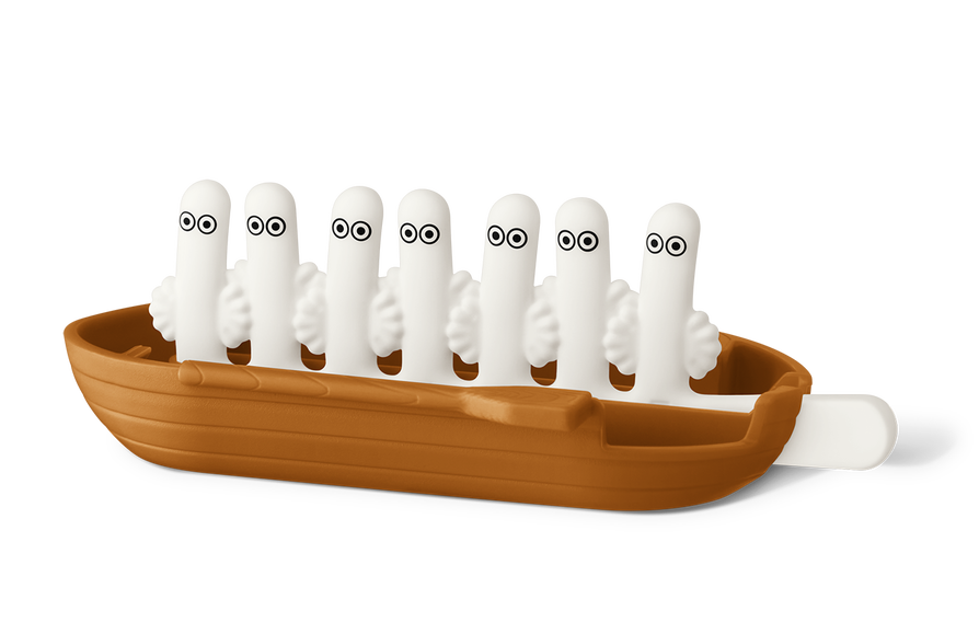 ニョロニョロをボートに立たせたり、横に寝かせてコームを収納したりすることができます。ニョロニョロの下には数字が描かれており、数字当てゲームも楽しめますよ。