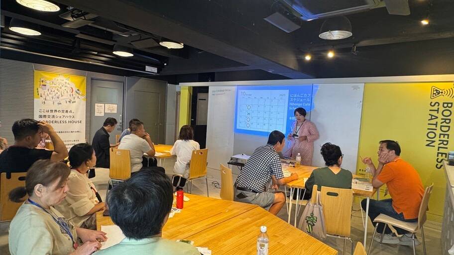 当日は、多言語機能別消防団員6人と町内在住で日本語があまり話せない外国籍住民6人が参加。さらに多文化共生を研究する東京都立大学の学生4人も加わった。