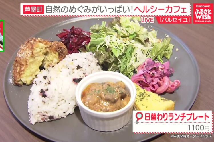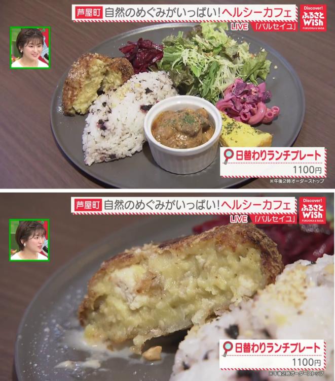 こちらでは、地元野菜や自家農園で採れた食材をふんだんに使ったランチが楽しめます。1番人気は「日替わりランチプレート」(1100円)。この日のメインは自家農園のさつまいもを使ったコロッケで、とても柔らかく、自然な甘さが魅力的です。