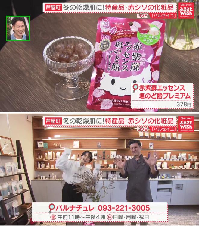 「赤紫蘇エッセンス 塩のど飴プレミアム」(378円)も紹介しました。赤シソのエッセンシャルオイルや海塩、きび糖を使った優しい味。