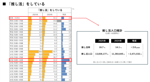 この結果をもとに日本全国の15〜69歳男女を対象に試算すると、年間の推し活市場規模はなんと約3兆5千億円 にものぼるといいます。