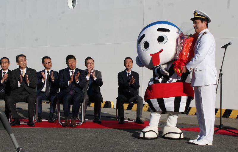 飛鳥Ⅲが四日市港に初寄港、太鼓の演奏や歓迎式典などでお迎え