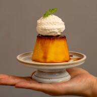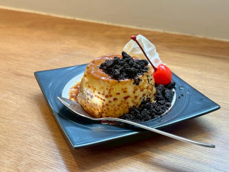 すっきりとした甘みにほろ苦いカラメルが効いた大人な味わいで、クラシックなプリンの上にはクラッシュしたココアクッキーが散りばめられています。