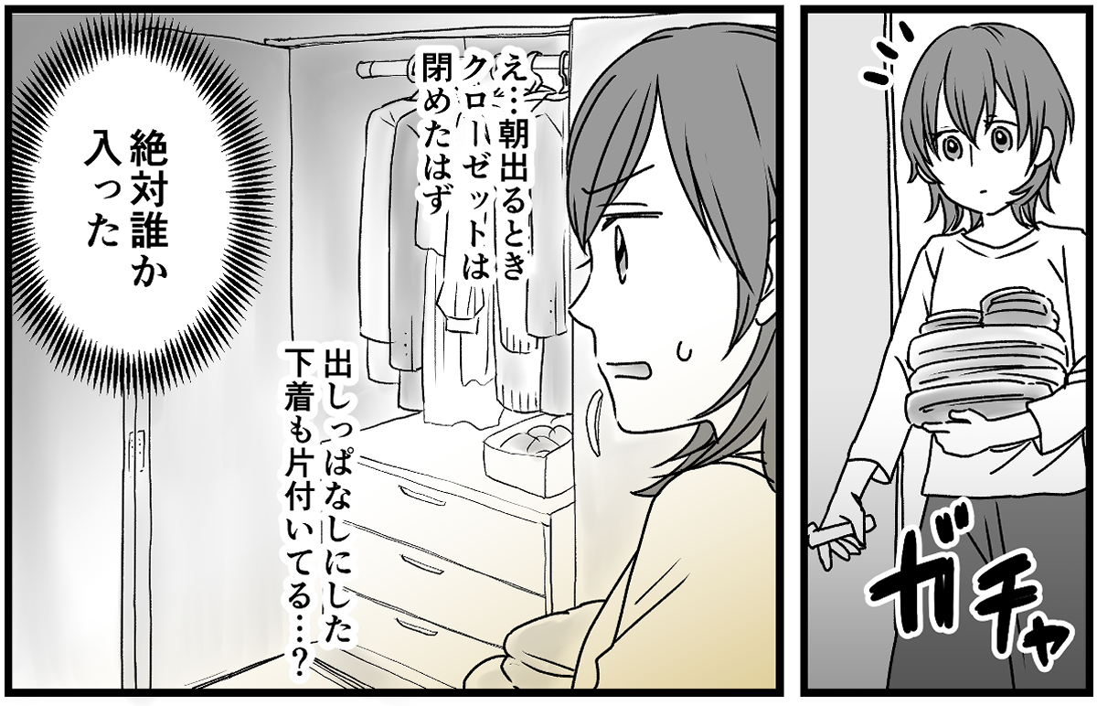 寝室のクローゼットは家を出るときに閉めたはずなのに開いていました。さらに出しっぱなしにした下着も片付けてありました。