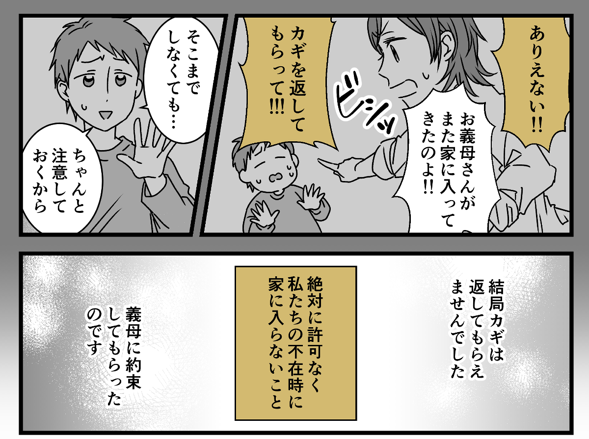 そのときは最終的に夫が義母を庇ったため、結局、義母からカギを返してもらえませんでした。