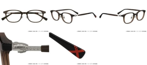首元の捕縛布がフロントにまでかかるようなイメージをメタルパーツで表現しました。フレームは相澤のコスチュームカラーの黒を採用し、左のテンプルエンドのみに赤のワンポイントをあしらい、“個性”発動時に目が赤くなる要素をモチーフにしています。