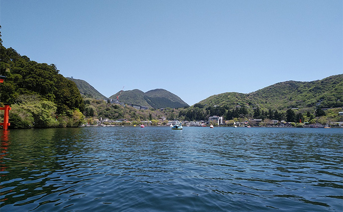 釣れる場所は例年決まっており、湖北の湖尻湾から始まり、湖央の箱根園、お盆を過ぎると箱根湾、犬の墓、白浜、9月下旬から10月上旬には元箱根湾でも釣れるようになる。そのほか、立石湾、コベリの浜沖などでも釣れる。いずれも砂地底の釣り場だ。