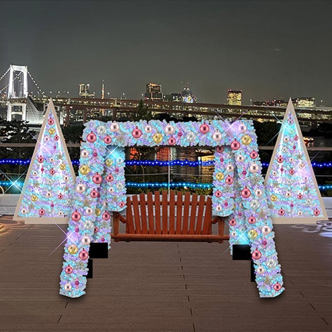 同じくシーサイドデッキには、冬季限定のオリジナルブランコも登場。レインボーブリッジを背景に記念撮影ができるそう。きらびやかで写真映えする1枚が撮れるはず!