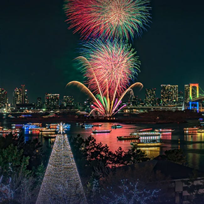 さらに、12月20日(土)は、音楽に合わせて花火を打ち上げる「ミュージック花火」が楽しめ、24日(水)には、ヒルトン東京お台場、アクアシティお台場、デックス東京ビーチによる特別協賛の花火も。