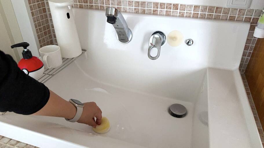 洗面台は髪の毛や垢、ヘアワックスなどの整髪料、さらには洗顔料などいろんなものが混ざり、汚れが蓄積されていくのですが、それらがキレイに落ちる優れ物!