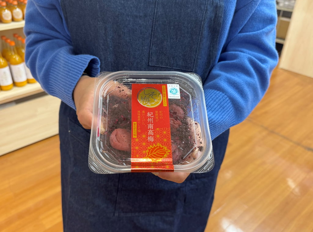和歌山名産・紀州南高梅は10種類以上をラインナップ。大粒のパック入りから個包装タイプまであり、なかでも昔ながらの味わいで人気の「しそ梅」は、ご飯に混ぜて食べるのがおすすめとのこと。