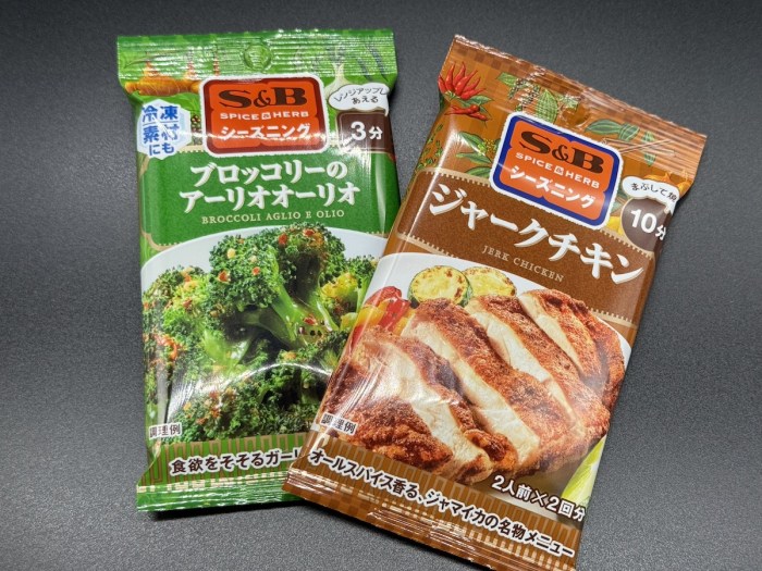 ・S&Bシーズニング ブロッコリーのアーリオオーリオ/ジャークチキン(各1点)